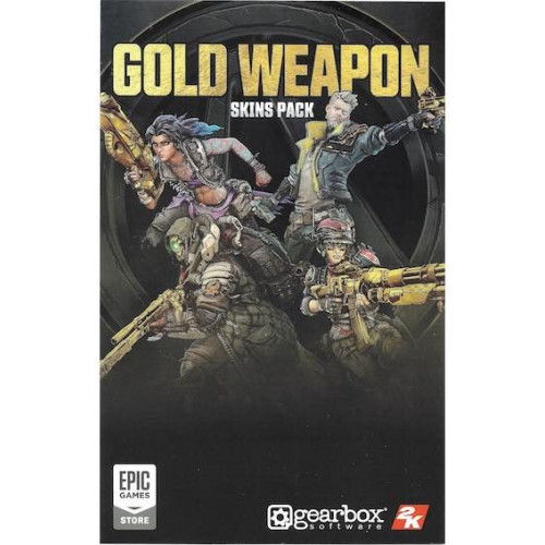 • Bring a little extra bling to your favorite weapons in Borderlands 3 with the Gold Weapon Skins Pack. This pack contains a gold weapon trinket and gold weapon skins, applicable to all guns.